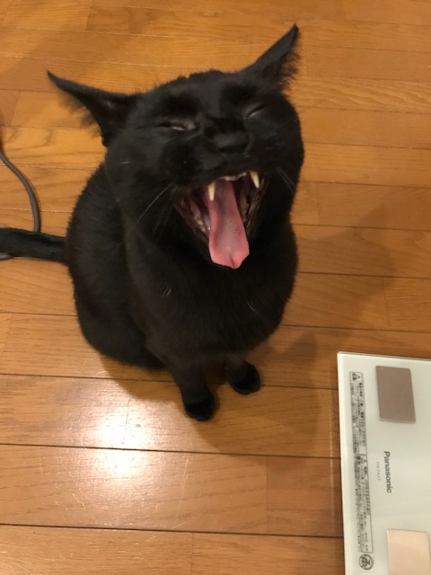 ウチのiPhoneに言わせると、愛猫は『熊(熊で検索できる)』らしいので、ガォ~!とあくびをしている写真を加工しようと思ったが、迫力に欠ける。