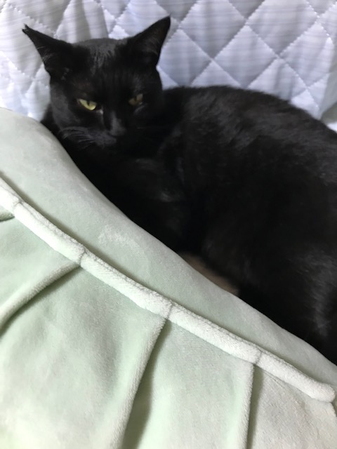 社長の椅子に大きな平たいクッションを置いていたため、寝床になったようだ。夜、マッサージチェアを使おうとした主人が項垂れて戻って来たのを何回も目撃しているが、爆睡中の愛猫を退かすのは忍びないらしい。故に、今は愛猫の寝床になっている。