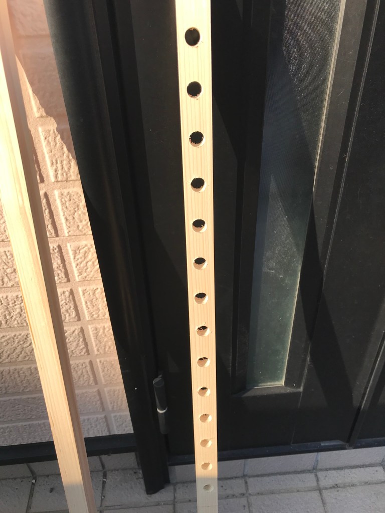 材料を購入してきて、3本の角材に3cm間隔に印をいれていく。