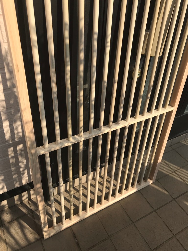 後日、別件で訪れた職人さんが、玄関ゲートを褒めてくれました。そして、建具の歪みに関して、歪みが酷くなったら行う、後から直すやり方を教えてくれました。その時に、強度や歪み補正のための建具の在り方を聞いて、そうだったのかと納得。