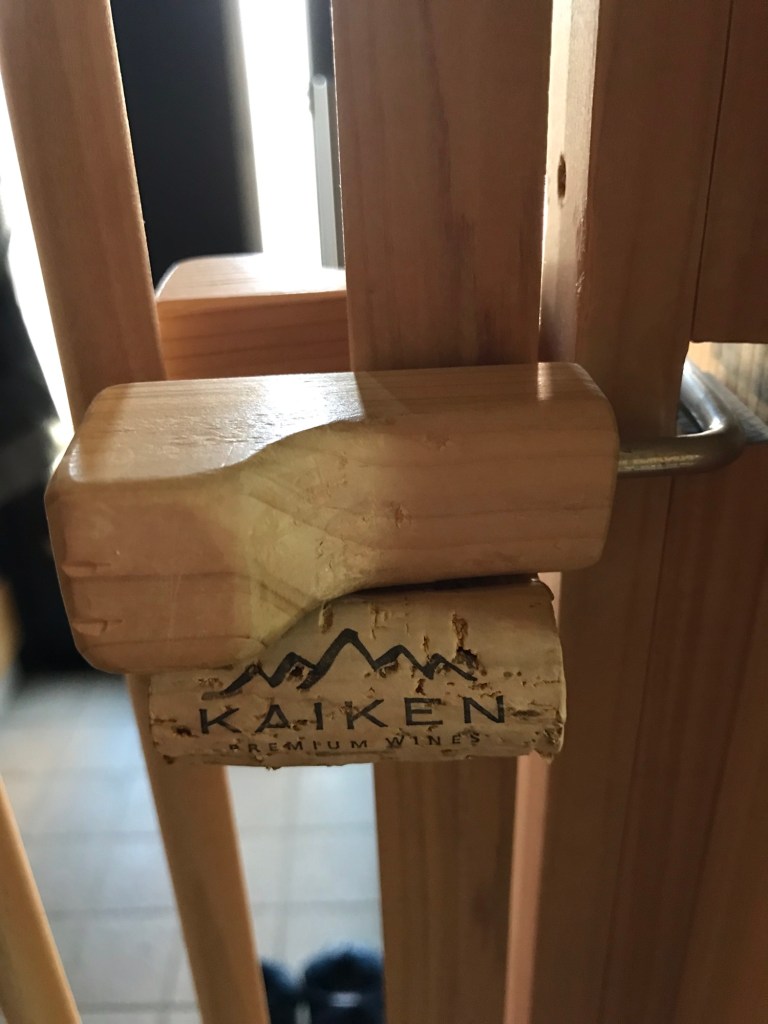 これはホームセンターでコの字型のネジ金具に猫足を彫って取り付けたもの。ロック出来るように、留め金はコルクにしてボンドで付けました。