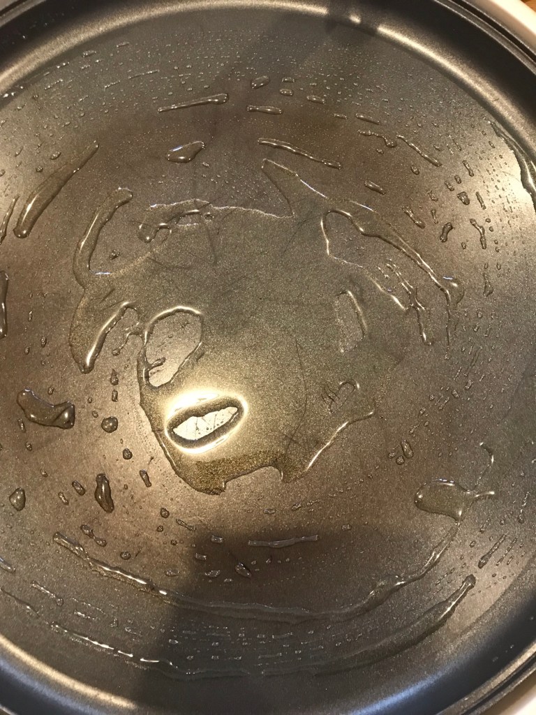 ③ 1枚目の油は少し多めに入れて、ホットプレートに馴染ませてから、キッチンペーパーで少し拭き取ります。