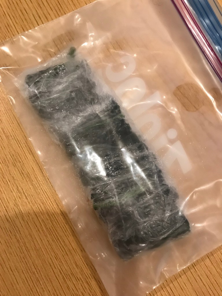 写真の様に平らに凍らすと、使う時にペキペキ好きな分量で折って使えます。