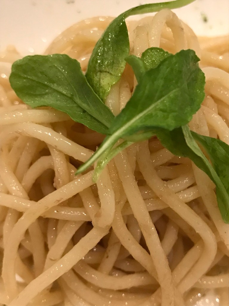 *ニンニクを入れたい方は、この時点でジェノベーゼとおろしニンニクを混ぜ合わせてからパスタと和えれば、通常のジェノベーゼとして食べられます。