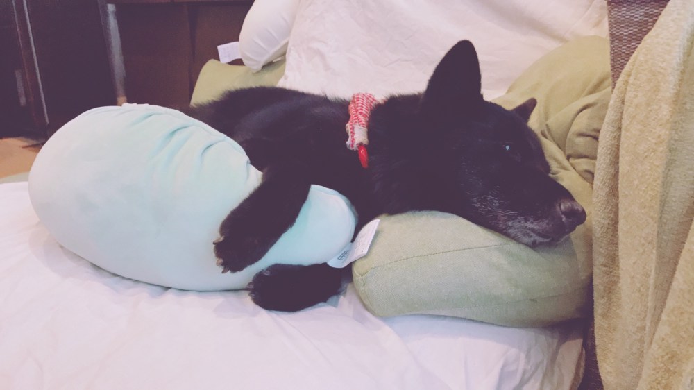 7年以上前にニトリで買った丸洗い可能な餃子クッション。愛犬の休息の為に購入したものだったが、それが役立ってしまったのは晩年だった。