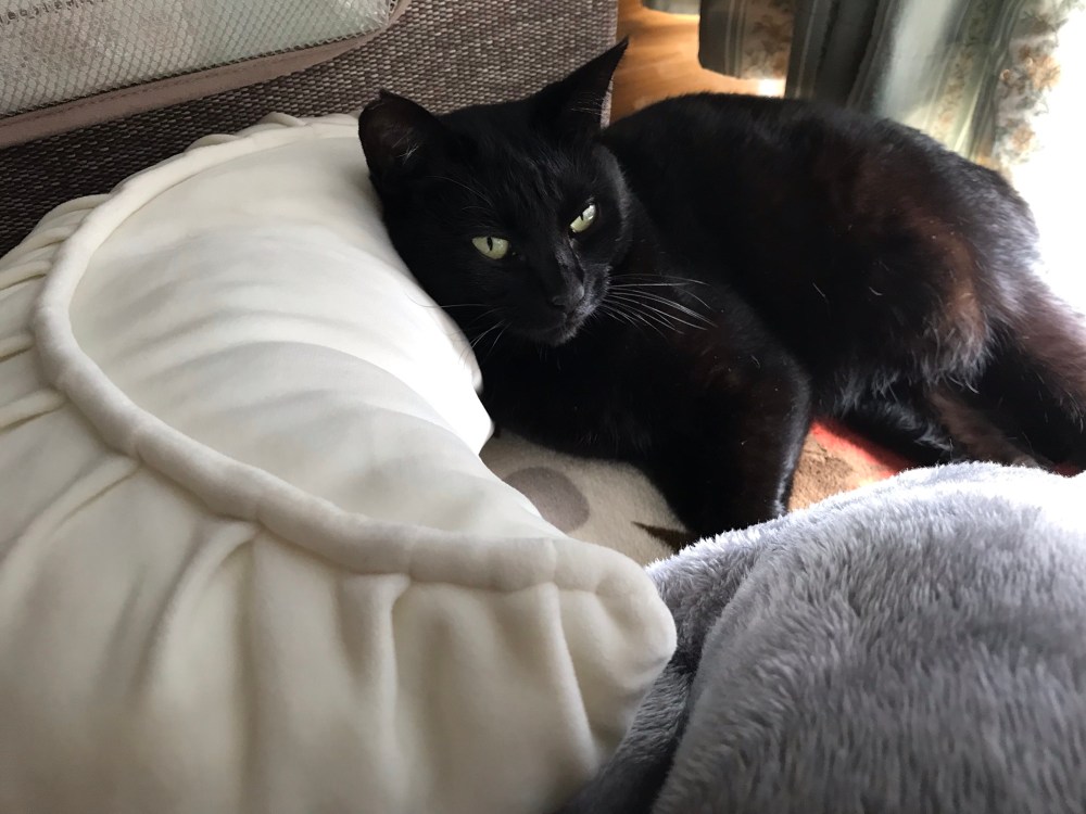夜は食卓風景が見える椅子に移動して、ジッとこちらを見ながら、たまに話しに入ってくる様にニャ~と鳴きます。